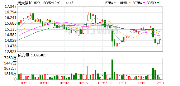 财报显示,截至2025年9月30日止六个月,周大福营业额为389.86亿港元,同比减少1.1%;经营溢利为68.23亿港元,同比增长0.7%;股东应占溢利为25.34亿港元,较去年同期增长0.1%。