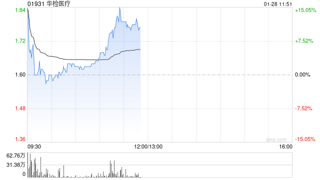 华检医疗(01931)午前股价上涨11.25%,现报1.78港元,成交额2128.11万港元。