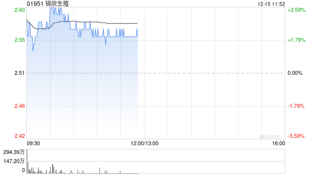 锦欣生殖(01951)盘中涨超3%,截至发稿,股价上涨1.99%,现报2.56港元,成交额6602.21万港元。