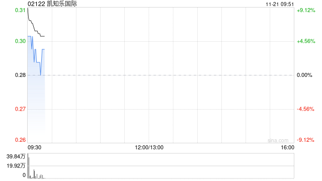 凯知乐国际(02122)早盘高开逾12%,截至发稿,股价上涨3.51%,现报0.295港元,成交额56.67万港元。