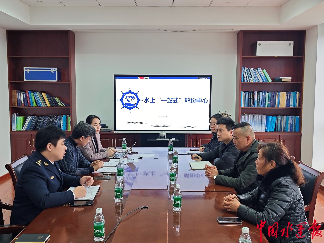 近日,崇明海事局与上海海事法院长兴岛派出法庭、上海国际航运仲裁院联合打造的长江口首家“水上一站式解纷中心”,成功调解“浙岱渔运02258”轮触碰海上风机事故赔偿纠纷,并完成仲裁确认,实现了2026年中心首例水上交通事故案件的高效闭环处置。