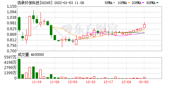 格隆汇1月3日丨次新股鸿承环保科技(2265.HK)近日持续走强,今日盘中再度涨超6%至0.99港元,市值9.9亿港元。