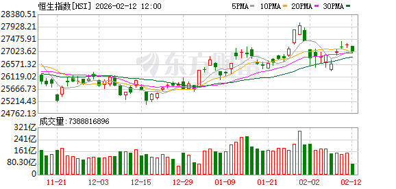 港股2月12日午盘走低,恒生指数收报27023.67点,跌242.71点,跌幅0.89%;恒生科技指数收报5407.59点,跌92.4点,跌幅1.68%。恒生指数成分股中药明康德、药明生物、新鸿基地产涨幅居前,百威亚太、携程集团-S、美团-W跌幅靠前。恒生科技指数成分股中商汤-W、美的集团、华虹半导体涨幅居前,金蝶国际、携程集团-S、美团-W跌幅靠前。