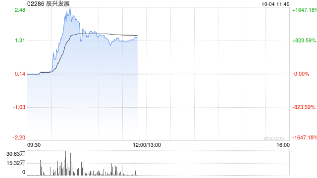 辰兴发展 (02286)开盘暴拉,一度涨超1700%,高见2.50港元;涨幅现收窄至上涨815.49%,现报1.30港元,成交额992.59万港元。