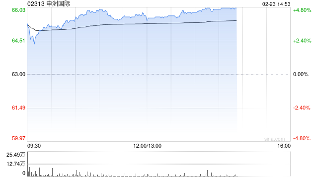 申洲国际(02313)午后股价上涨4.76%,现报66港元,成交额2.165亿港元。