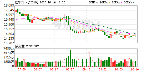 蒙牛乳业(02319)发布公告,2025年10月16日,公司回购股份100万股,回购金额为1444万港元。
