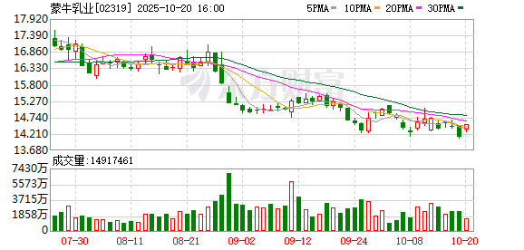 蒙牛乳业(02319)发布公告,2025年10月20日,公司回购股份70万股,回购金额为1014万港元。