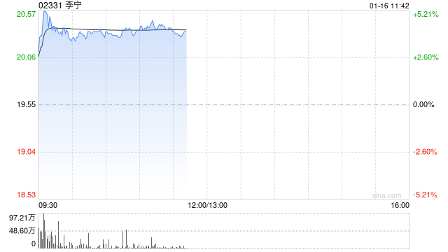 李宁(02331)盘中涨超5%,截至发稿,股价上涨3.94%,现报20.32港元,成交额3.09亿港元。
