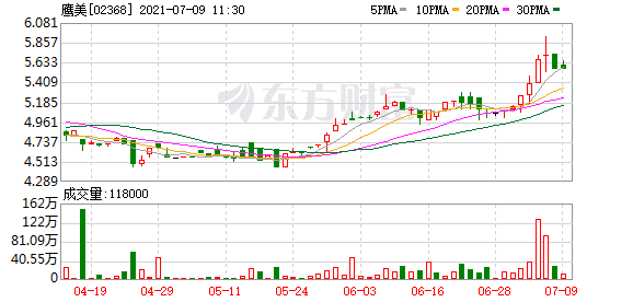 港交所权益资料显示,鹰美(02368-HK)获主席、执行董事钟育升于7月6日-7日在场内分别以每股平均价5.6港元、5.6164港元各自增持4万股及7.8万股,两日增持11.8万股,共涉资约66.21万港元。增持后,钟育升的最新持股数目为91,072,000股,持股比例由17.10%升至17.12%。