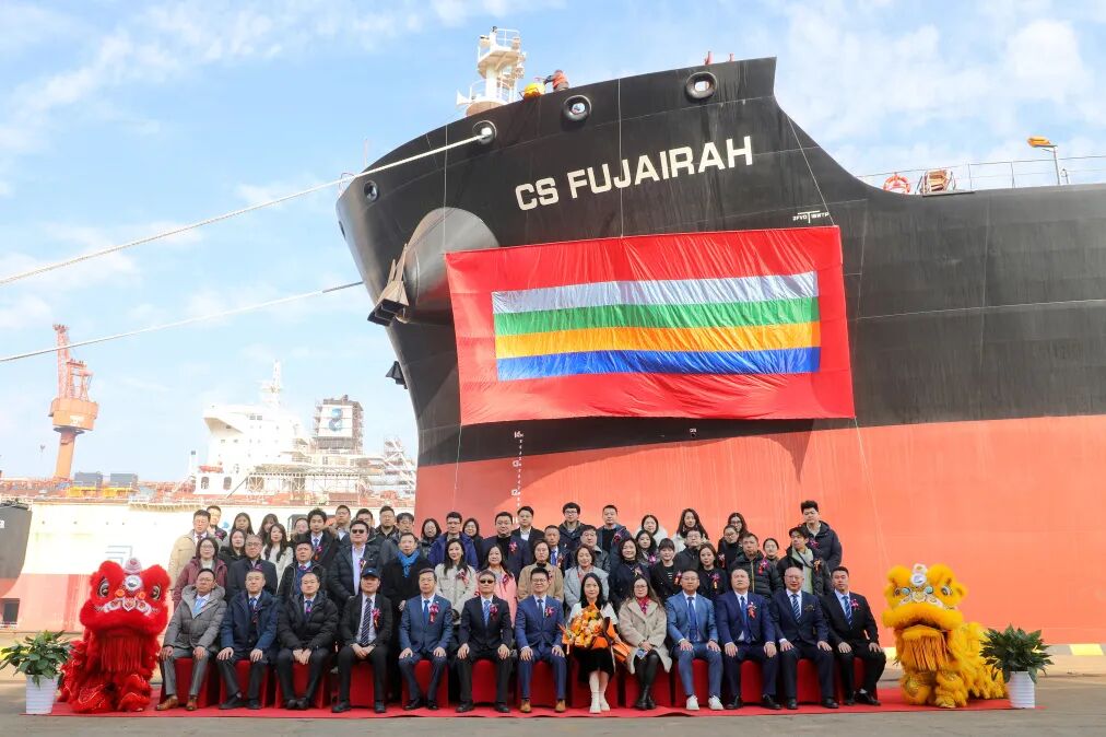 仪式上,命名人温松英女士为新船命名剪彩,祝愿“CS FUJAIRAH”轮乘风破浪、扬帆远航。