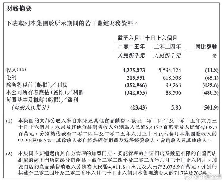 中新经纬8月21日电 百果园集团21日在港交所披露2025年中期业绩公告。
