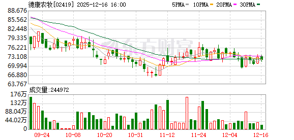 德康农牧(02419)发布公告,2025年12月16日,公司回购股份4.33万股,回购金额为311万港元。