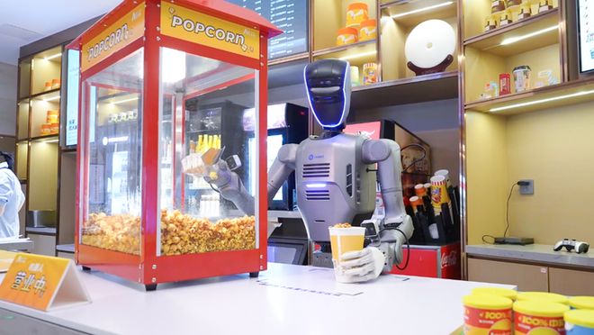 越疆旗下全自主人形机器人近日成功进驻深圳K11 Art House电影院,实现全球首例在复杂商业环境中全自主运营的应用落地与技术突破。该机器人在影院内单日可连续工作14小时,独立完成超过1000杯爆米花的制作与售卖任务,全程无需人工辅助、预设轨迹或遥控操作。
