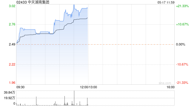 中天湖南集团(02433)尾盘再涨19.28%,现报2.97港元,成交额831.028万港元。月内股价翻倍。