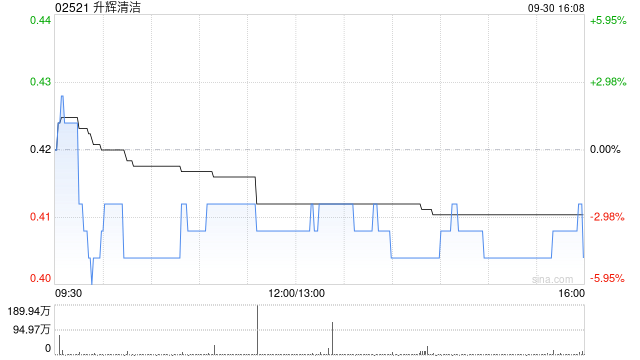 香港联交所最新数据显示,9月26日,Sunrise Cleanness Investment Holdings Limited减持升辉清洁(02521)3337.5万股,每股均价0.342港元,总金额约为1141.425万港元。减持后最新持股数目约为5.531亿股,持股比例为28.37%。