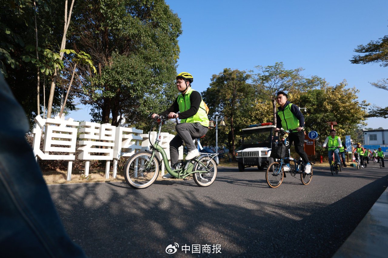 1月3日,“宝景创享”元旦专场活动上,政企代表们骑着大行自行车破风前行。