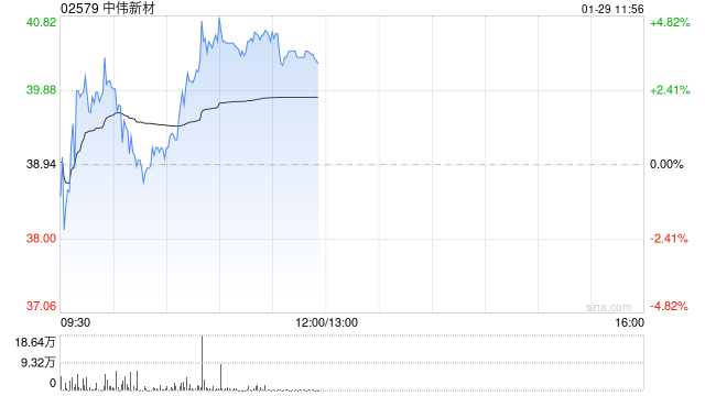 中伟新材(02579)盘中涨超4%,截至发稿,股价上涨3.60%,报40.34港元,成交额7610.76万港元。