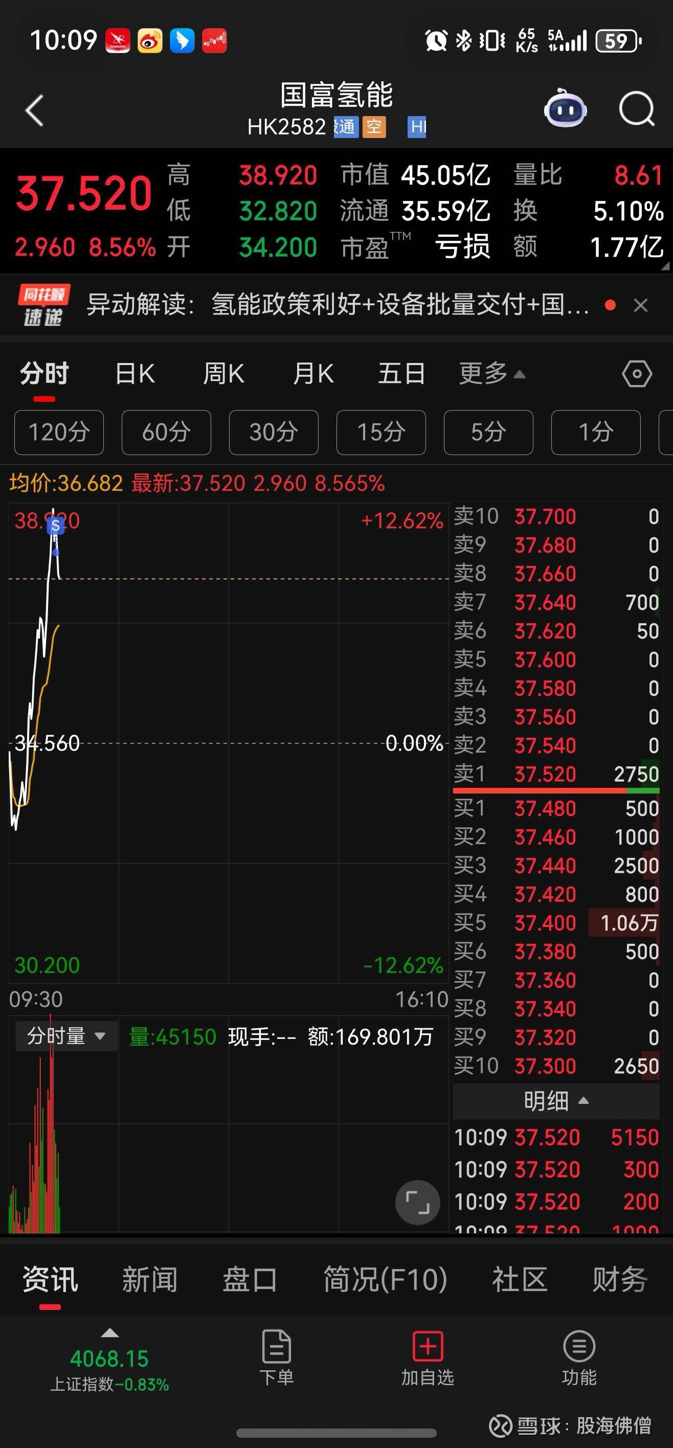 就在刚刚,我已经加仓国富氢能……