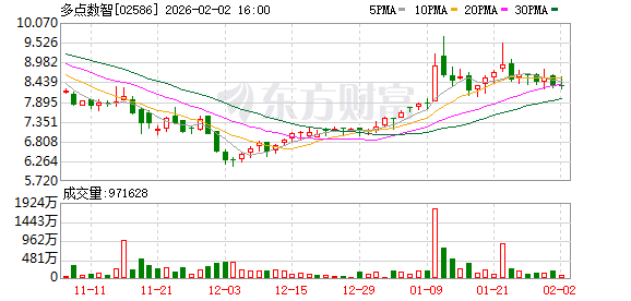 多点数智(02586)发布公告,2026年2月2日,公司回购股份33万股,回购金额为275万港元。