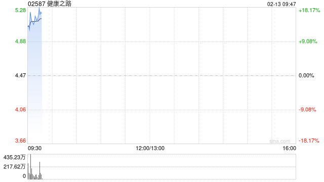 健康之路(02587)发盈喜后涨超14%,截至发稿,股价上涨14.99%,报5.14港元,成交额8500.08万港元。