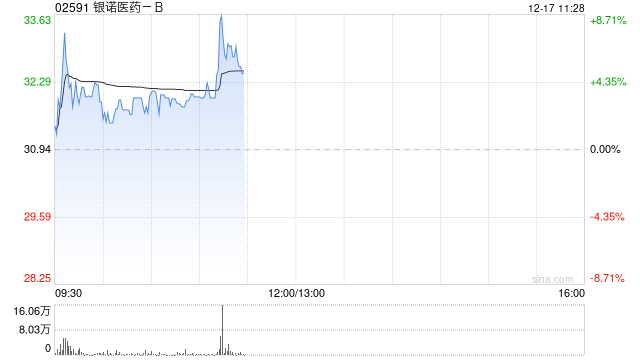 银诺医药-B(02591)午前股价上涨5.37%,现报32.60港元,成交额3325.27万港元。