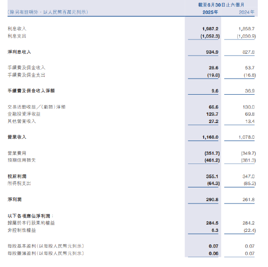 8月28日金融一线消息,宜宾银行发布截至2025年6月30日止六个月之中期业绩公告。数据显示,该集团取得净利息收入人民币9.35亿元,同比增加12.94%;营业收入11.68亿元,同比增加8.35%;净利润2.91亿元,同比增加11.08%;归属于本行股东的净利润2.85亿元,同比持平;每股基本盈利0.07元。