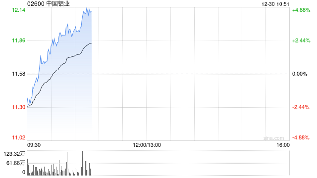 中国铝业(02600)早盘股价上涨3.20%,现报11.95港元,成交额2.23亿港元。