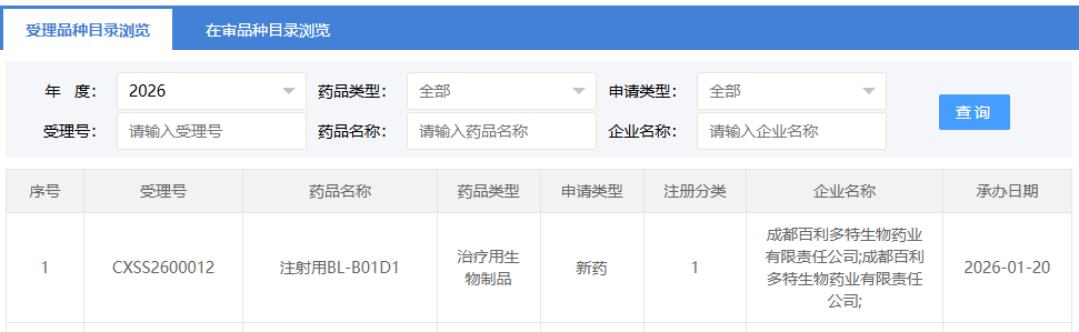 1 月 20 日,CDE 官网显示,百利天恒 1 类新药注射用 BL-B01D1 新适应症上市申请获受理,用于既往经 PD-1/PD-L1 单抗联合含铂化疗治疗失败的复发性或转移性食管鳞癌患者。此前,该适应症已被 CDE 纳入优先审评。