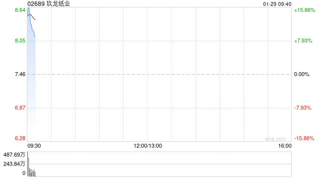 玖龙纸业(02689)早盘高开近15%,截至发稿,股价上涨11.80%,现报8.34港元,成交额1.25亿港元。