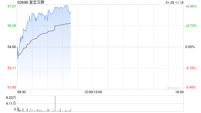 复宏汉霖(02696)早盘股价上涨5.31%,现报57.50港元,成交额2750.12万港元。