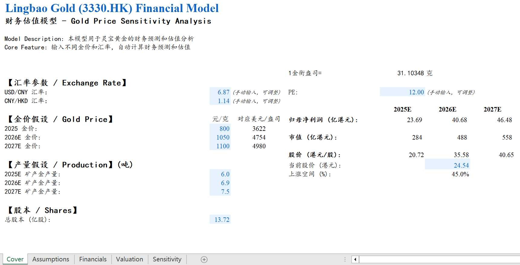 更新灵宝黄金的财务估值模型如下
