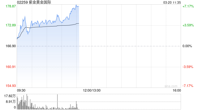 部分黄金股午前回暖,截至发稿,紫金黄金国际(02259)上涨7.07%,报178.70港元;灵宝黄金(03330)上涨7.14%,报25.20港元;中国黄金国际(02099)上涨2.59%,报150.40港元;中国白银集团(00815)上涨1.05%,报0.48港元。