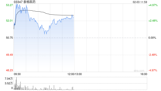 泰格医药(03347)盘中涨超4%,截至发稿,股价上涨3.35%,现报52.45港元,成交额4871.71万港元。