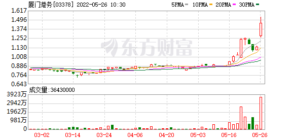 据港交所公告,厦门港务H股于5月26日上午10:00起短暂停止买卖。据Wind数据,厦门港务H股盘中一度上涨31.58%,停牌前股价为1.45港元/股。公司公告并未披露停牌原因。