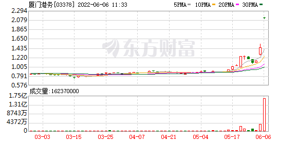 厦门港务(03378.HK)在今日复牌,早盘大涨超40%。