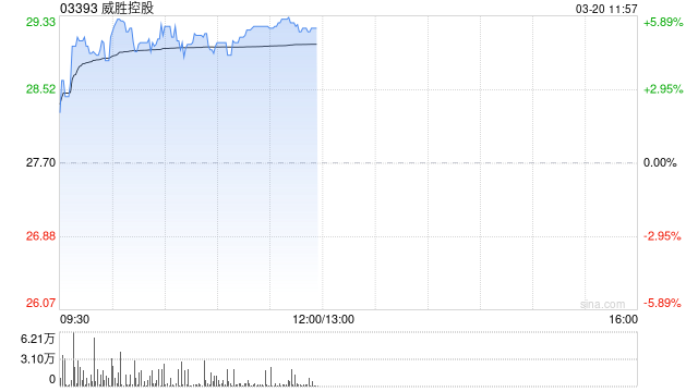威胜控股(03393)午前涨超5%,截至发稿,股价上涨5.27%,现报29.16港元,成交额3668.16万港元。