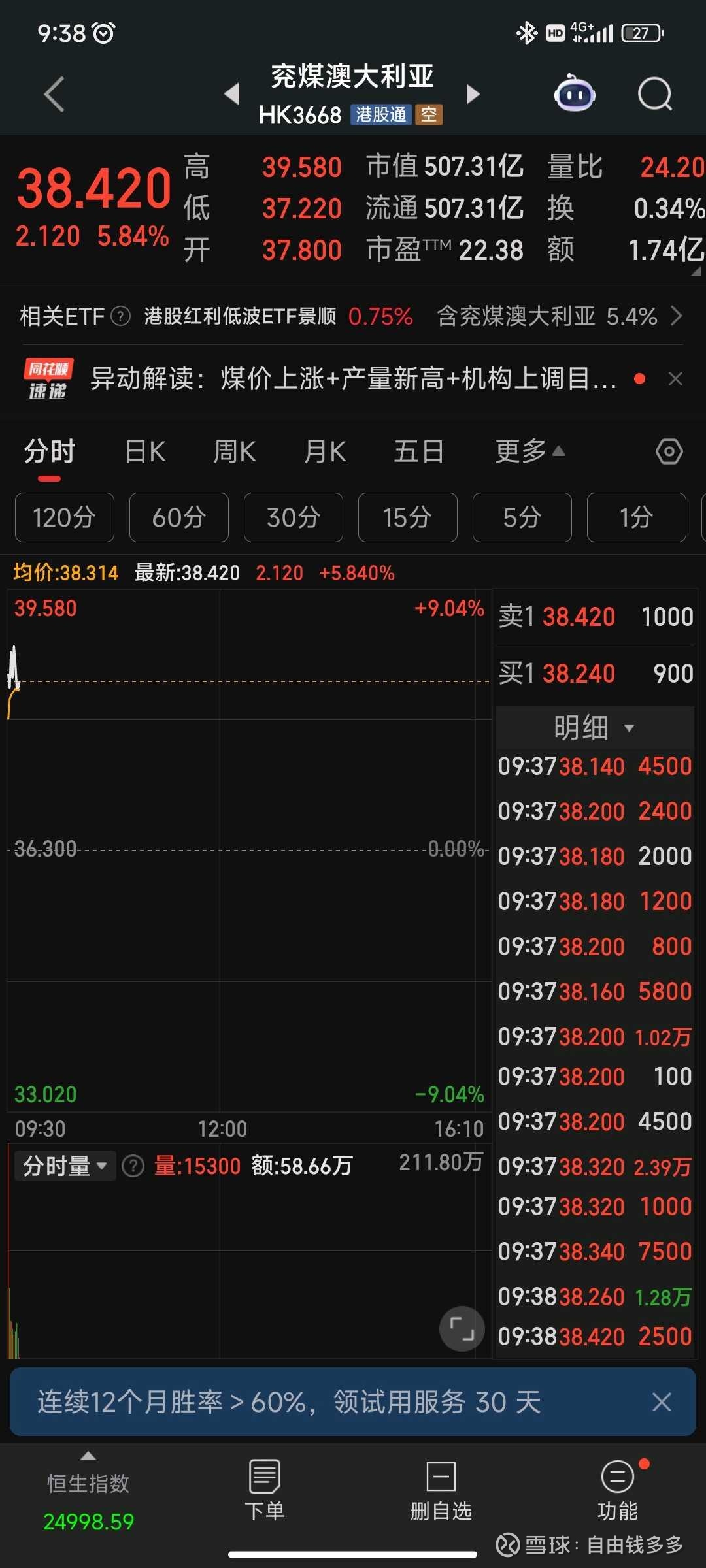 建仓兖澳,我觉得是很清晰的扩产+价格底部,很可惜在etf调仓不得不卖的时候没有关注掉。尽管涨了不少了,供需的缺口主要还是在海运煤(新疆外蒙扩产而印尼限产),现货结算,净现金,绝对估值比a股同行优势明显,也不用担心国内加税的叙事。