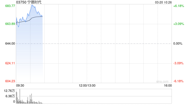宁德时代(03750)盘中涨超6%,截至发稿,股价上涨4.50%,现报673港元,成交额9.84亿港元。