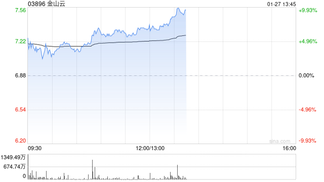 金山云(03896)午后股价上涨6.54%,现报7.33港元,成交额10.75亿港元。