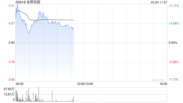 金界控股(03918)绩后一度涨超7%,截至发稿,股价上涨2.80%,报4.04港元,成交额1877.25万港元。