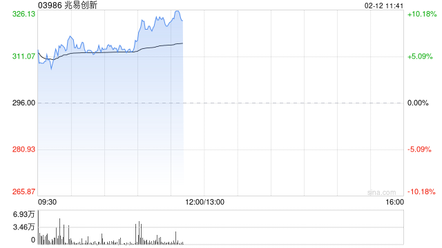 兆易创新(03986)午前股价上涨10.07%,现报325.80港元,成交额3.93亿港元。