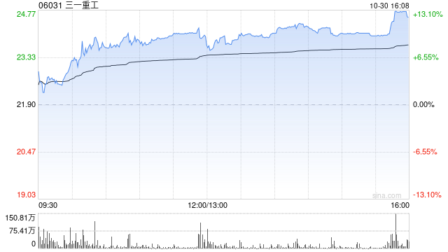 三一重工(06031)公布2025年前三季度业绩,营业收入约657.41亿元,同比增长13.56%;归属于上市公司股东的净利润约71.36亿元,同比增长46.58%;基本每股收益0.8455元。