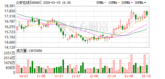 1月15日,众安在线(06060)发布公告,2025年1月1日至2025年12月31日,公司所获得的原保险保费收入总额约为356.43亿元。
