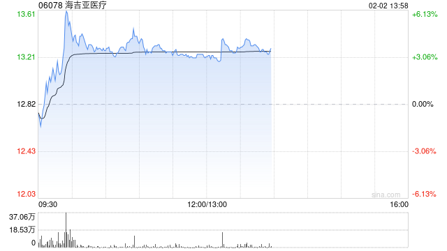 海吉亚医疗(06078)盘中涨超4%,截至发稿,股价上涨3.28%,报13.24港元,成交额6474.83万港元。