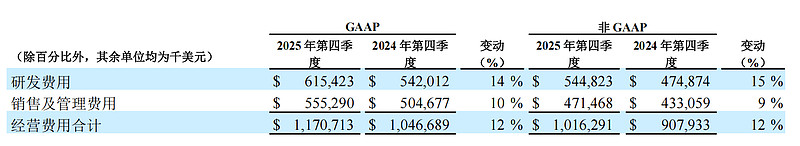下表分别概述2025年第四季度和2024年第四季度的经营费用: