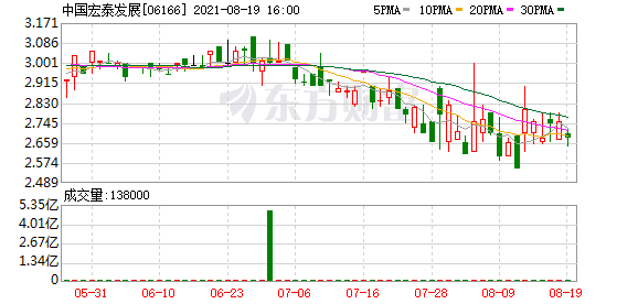 中国宏泰发展(06166.HK)公布中期业绩,截至2021年6月30日止6个月,公司收入为人民币6.79亿元,同比减少52.4%;公司擁有人应占期内溢利为人民币1.04亿元,同比减少82.23%;基本每股盈利为人民币0.06元。