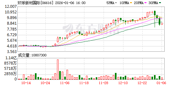 环球新材国际(06616)发布公告,2026年1月6日,董事会宣布已完成发行于2027年到期的10亿港元4.25%可换股债券。