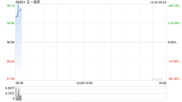 五一视界(06651)首挂上市,公告显示,每股定价30.5港元,共发行2397.52万股股份,每手200股,所得款项净额约6.528亿港元。截至发稿,股价上涨26.75%,现报38.66港元,成交额1.21亿港元。