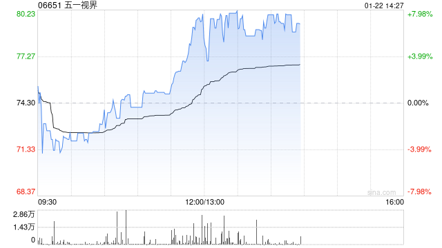 五一视界(06651)午后涨近8%,高见80.45港元,再创新高,较招股价30.5港元已涨超160%。截至发稿,股价上涨7.60%,现报79.95港元,成交额4897.813万港元。