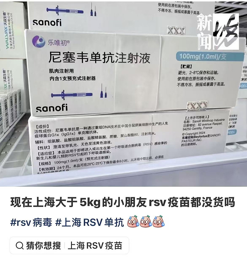 日前在小红书等社交平台上,不乏家长发布笔记提及孩子需接种尼塞韦单抗却遭遇缺货的情况。